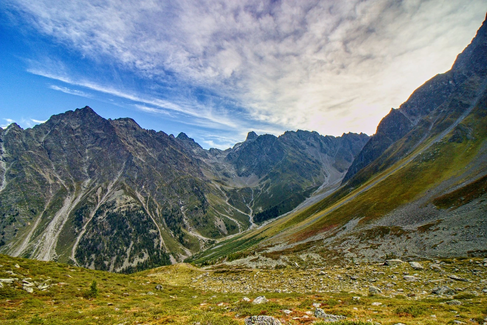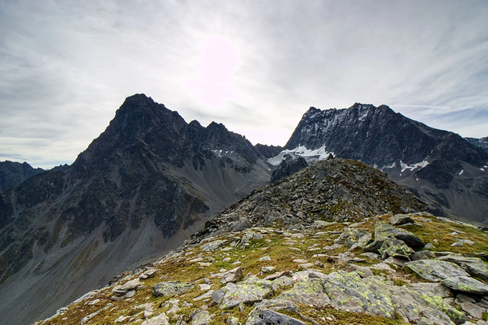 Do hodinky jsem nahoře, rozhlédnu se, udělám pár fotek a zase sbíhám pro batoh na Verpeilhütte, abych mohl pokračovat dále. Cestou však opět potkávám tu věčně ztracenou ženu a musím ji pomoci zorientovat se na cestě, kterou jde. Moc mi děkuje a je ji líto, že nejdu dále stejným směrem, protože se prý úplně ztratí. Se smíchem se rozloučíme a pomalu se vzdálíme z dohledu.